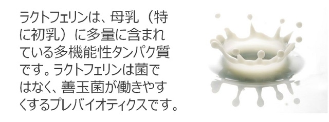 【原材料名】乳酸菌混合末(マルトデキストリン、ロイテリ菌末、スクロース、ラムノーサス菌末)(デンマーク製造)/セルロース、HPMC、ステアリン酸カルシウム、二酸化ケイ素、ラクトフェリン(乳由来)