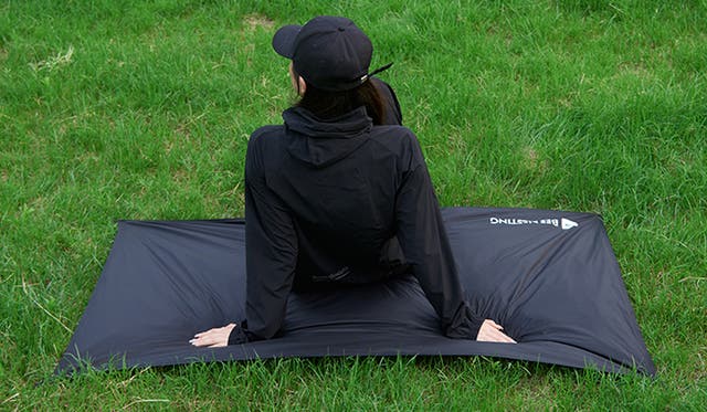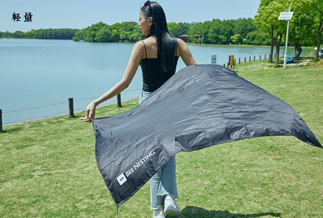 グランドシートとして軽量、折り畳みで簡単で、バックパックに掛けたり、メッシュバッグに入れたりできる。