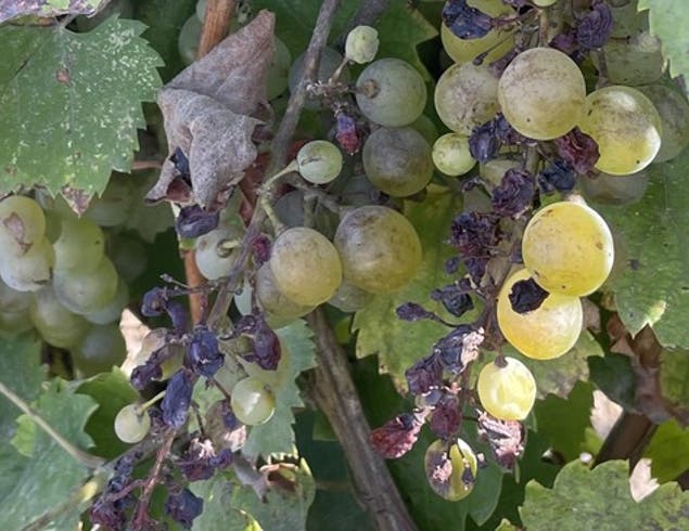 写真の中にある干からびたブドウが、ハチミツのような甘さが凝縮されている貴腐ブドウです。