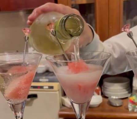 写真は、スイカを入れたグラスに注いでいる場面ですので、普通より発泡しています。香りには青リンゴを感じさせる爽やかさがあり、スパークリング代わりのウエルカムドリンクとしてもぴったりです。