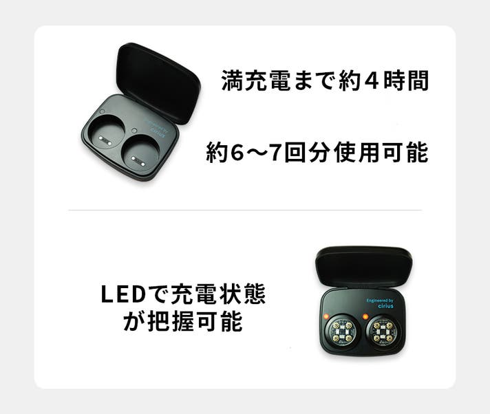 ケースにバッテリーが搭載されており、ケースに入れるだけで充電されます。