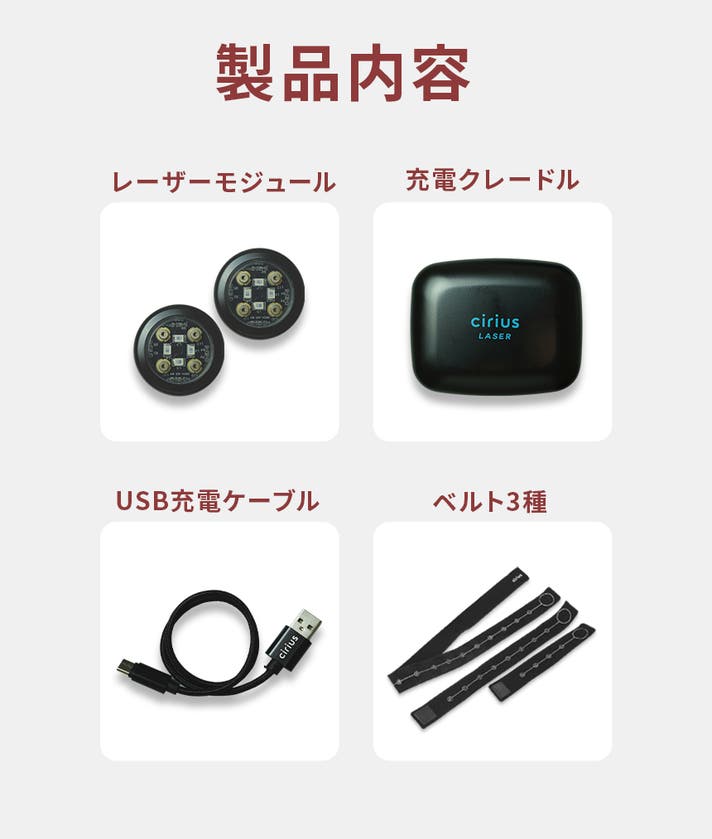 本体、充電ケース、充電ケーブル、固定用ベルト3種
