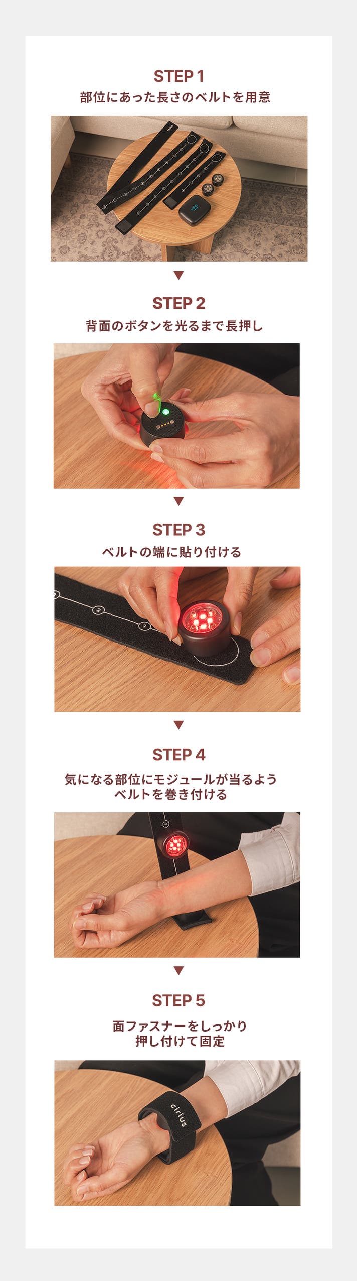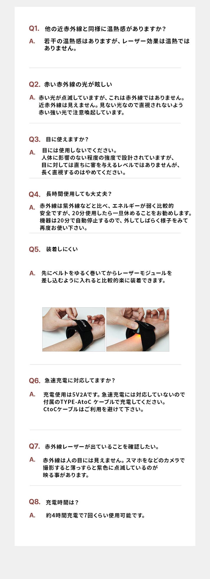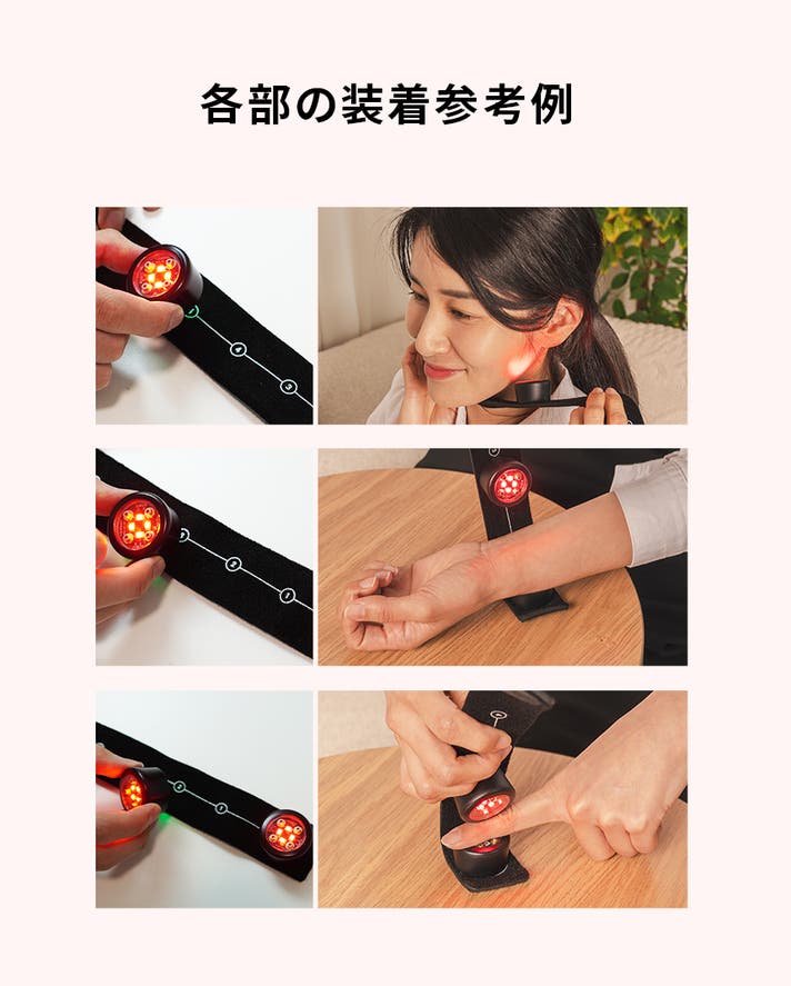 当社LED方式の近赤外線ケア製品はベルト状で扱いやすく、より広い範囲に効果をもたらします。