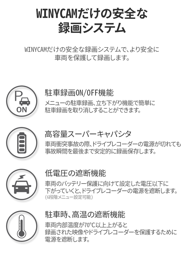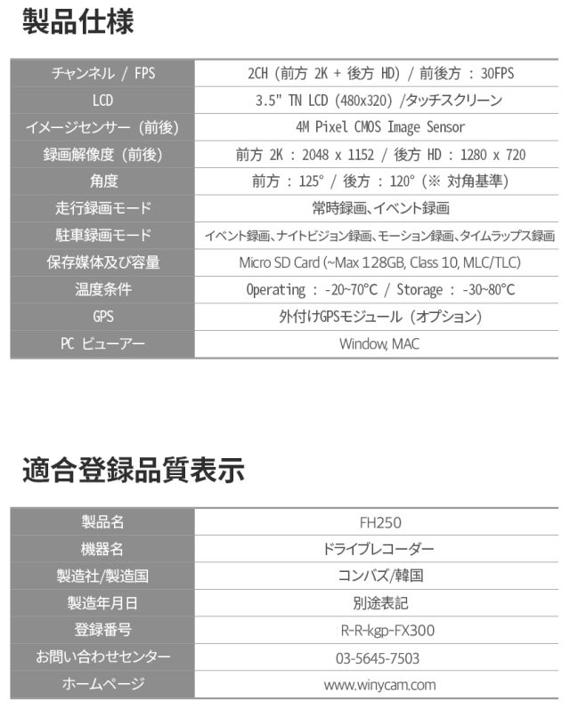 弊社の「FH250」は、開発段階から日本のユーザー様の悩みやニーズについて調査を行い、より安全な運行を目標とし作り上げた製品でございます。この機会で日本ユーザー様にWINYCAMのブランドパワーや先進の技術力ををもっと知って頂きたくと思い、出品を決意いたしました。どうぞ、よろしくお願い申し上げます。