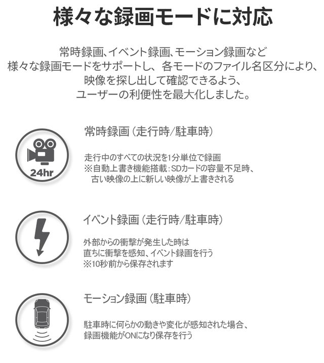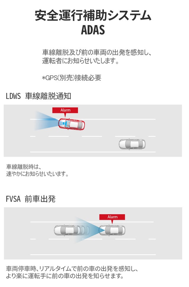 - タイムラプスと先進運転補助システム(ADAS)搭載!
