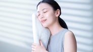 タオルで包み込むように、水分をやさしく拭き取ります。ポイントはタオルでゴシゴシと拭かないこと。お肌にできあがった膜を定着させるようにやわらかく包み込むようにします。