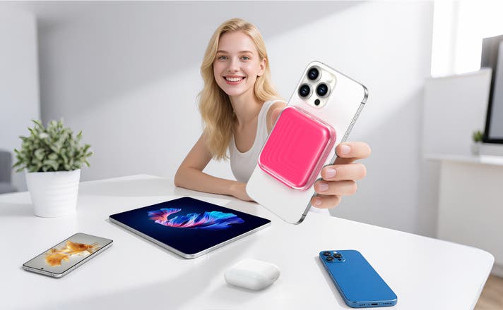 小型・軽量で携帯に便利。5000mAh容量のワイヤレスマグネット充電器