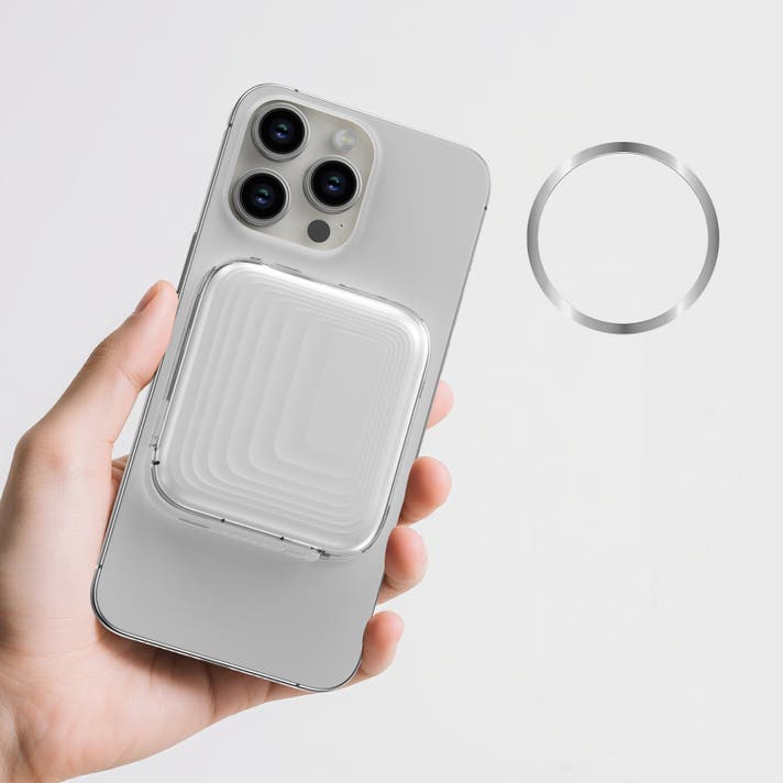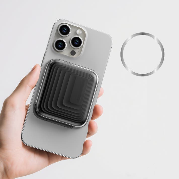 磁石が吸着しない端末でも附属の「磁石リング」で吸着可能に