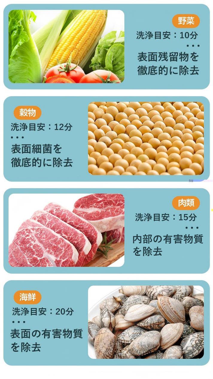 A:本製品は基本食材以外の洗浄はできません、食材を洗浄してください。