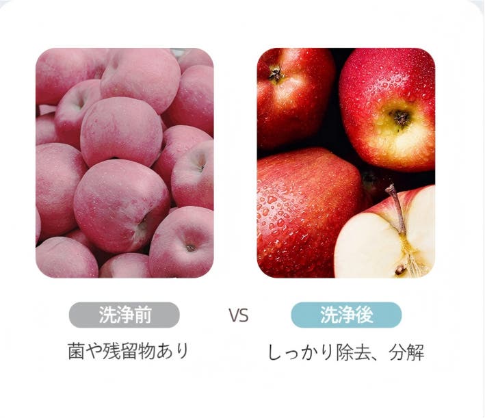 - ヒドロキシ基の力で野菜・果物や食材の洗浄は化学薬剤を使わずに洗浄効果を得られます!