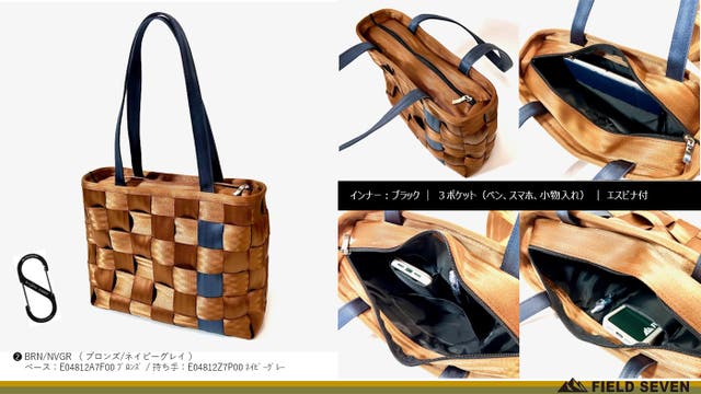 ●自動車のシートベルトで作られたアースカラーのトートバッグ。
