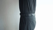 しかし、フィムラボのNEW楽々ストレッチベルトだとお腹が膨らむのと一緒にベルトが伸びてこのように伸びてしっかり固定しながら、ズボンがずれません。