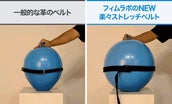 これは風船をお腹と考えた場合の一般的なベルトとフィムラボのNEW楽々ストレッチベルトとの比較です。