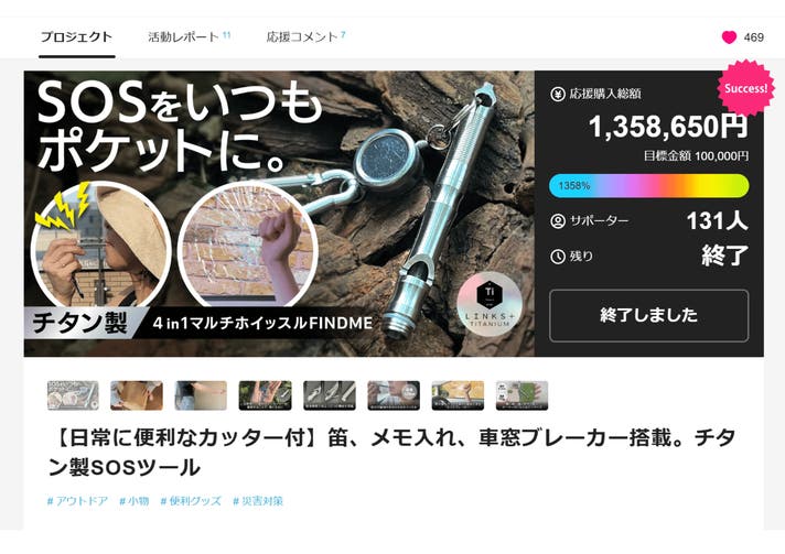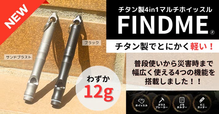 能登半島地震をきっかけに商品化した【チタン製4in1マルチホイッスルFINDME】は、2024年にMakuakeプロジェクトでSuccess!!一般販売に辿り着くことが出来ました。応援購入いただきました皆様に、改めて感謝申し上げます。
