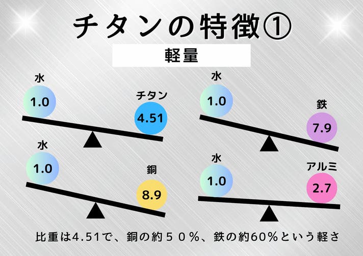 近年、高級金属といわれるチタンを採用する企業が増えているのには、その特徴に理由があります。
