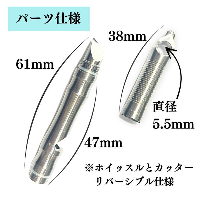 本体はリバーシブルでご利用いただけます。くるくると回して、反対向きにすることで簡単にホイッスルとミニカッターを入れ替えることが出来ます。