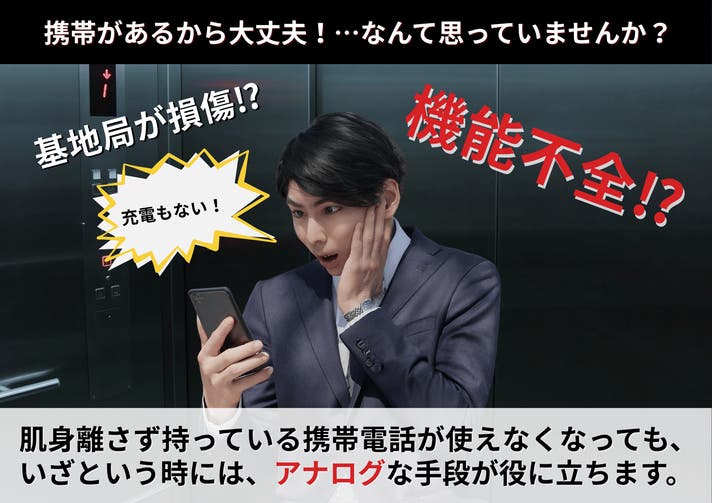 エレベーターの連絡ボタンも通じず、携帯の電源も切れ、外部に連絡がつかない恐怖は今でも思い出すと震えます。そんな時、助けになるアイテムを作りたい…という思いで即行動!!試行錯誤の上、商品化した思い入れのある商品です。