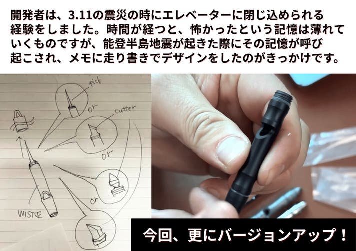 - 4つの機能を集約した防災マルチツール 【ホイッスル・ミニカッター・ガラスブレーカー・メモ収納】