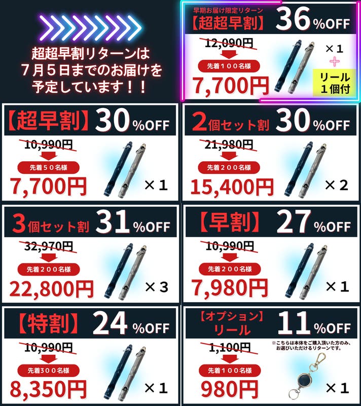 6月24日〆切、7月5日までに早期お届け★超超早割【限定36%オフ】+リール付