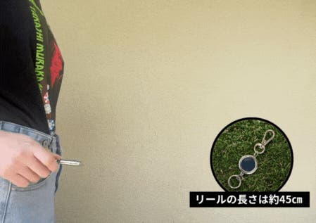 ホイッスルにつけるリールです。長さは約45㎝なので、ベルトなどにつけていただくことで、日常使いでダンボールを開けたりする作業など楽にFINDMEをお使いいただくことが可能になります。