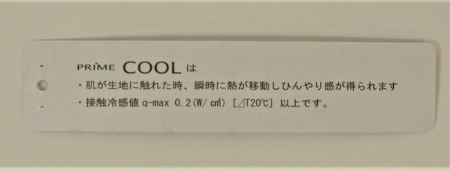 接触冷感素材 prime coolを使用。繊維中に水分を多く含むため 素早く汗を吸収し、液体が気体に変化する時に 周囲の熱を奪うことによる作用から ひんやりとした感覚を得られます。