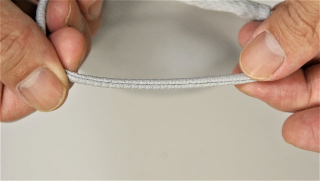 耳紐はジャージー素材を丸縫いしているので 通常のゴム仕様に比べて 柔らかく