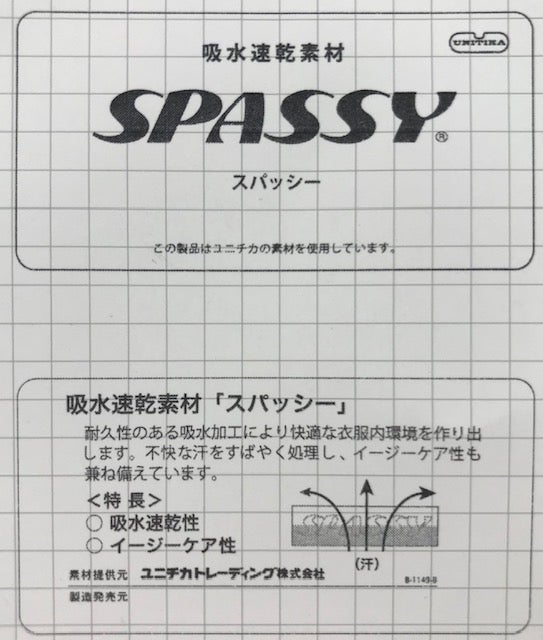 ユニチカトレーディング株式会社の吸水速乾素材 spassy を使用。耐久性のある吸水加工により快適な内環境を作りだします。速乾性に優れているため、洗ったマスクも乾きがはやく、イージーケア性も兼ね備えているため、繰り返し使いやすい素材となっています。 メッシュになっていますので、息苦しさを軽減してくれます