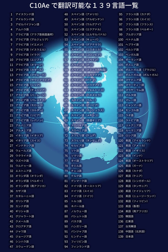 Fineblue C10Aeで翻訳できる言語数はなんと139言語。