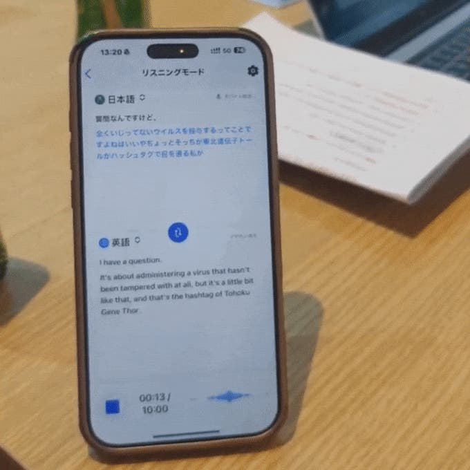 また一般のスマホの翻訳アプリと違い、テキスト入力や相手にスマホのマイクを向ける必要なし。ハンズフリーで、仕事をしながらでも会話ができて大変便利です。