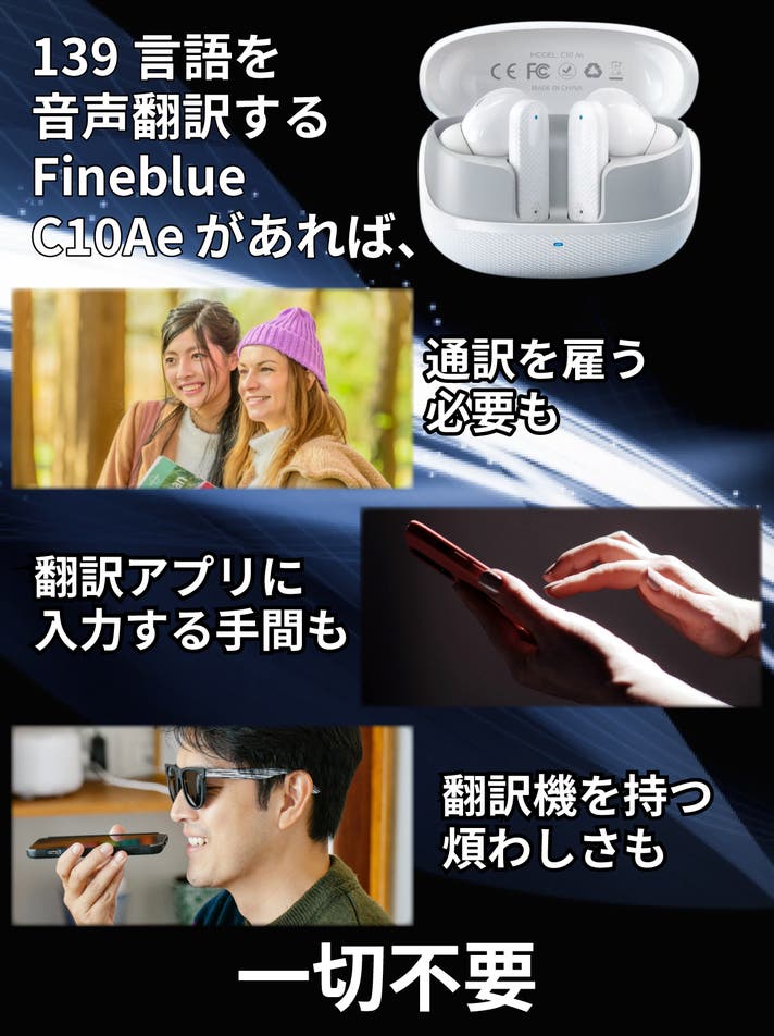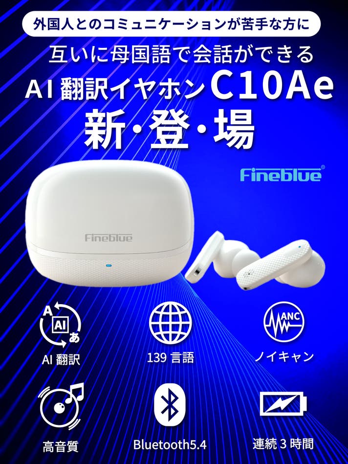 Fineblue C10Aeは互いに母国語で会話ができるイヤホン型のAI翻訳機です。