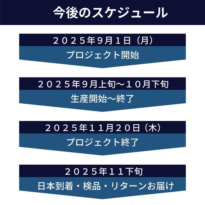 このプロジェクトはAll in型です。目標金額の達成に関わらず、プロジェクト終了日の2025年11月20日までに支払いを完了した時点で購入が成立します。