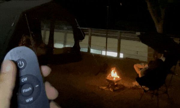 テントの中から明かりを調整したり、離れた位置に設置したランタンを簡単にコントロールすることが可能です。