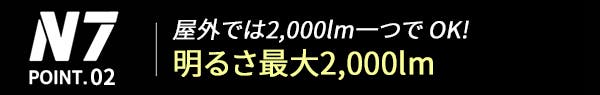 作動時間:最大2,000lm時 約3-4時間 / 最小100lm時 約30時間