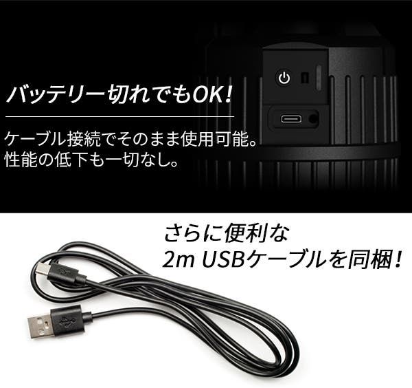 充電が少なくなってもOK。ケーブルをつないだままでも使用可能で、性能が落ちることはありません。さらに、便利に使える2mのUSBケーブルを同梱しています。