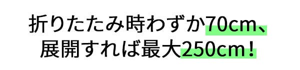 - 折りたためば70cm、広げれば250cm。収納はコンパクト、展開は圧倒的。