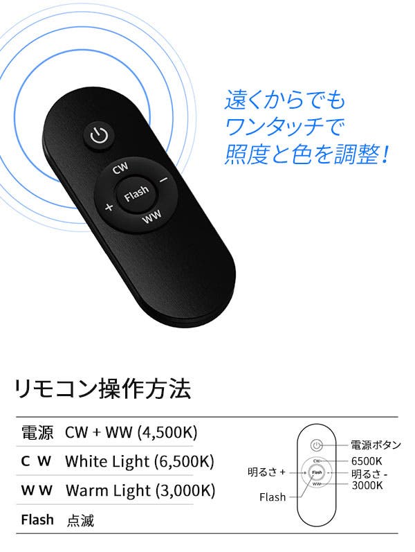 照明モード:3色温度(3,000K/4,500K/6,500K)