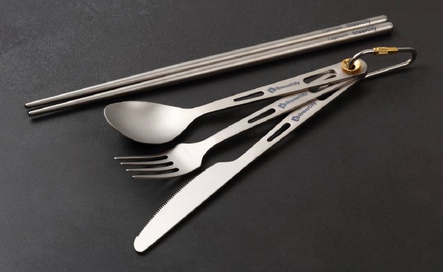 これらの特徴を持つチタン製のカトラリーはキャンプ、登山、職場、学校などの外出先での食事で大活躍するでしょう。