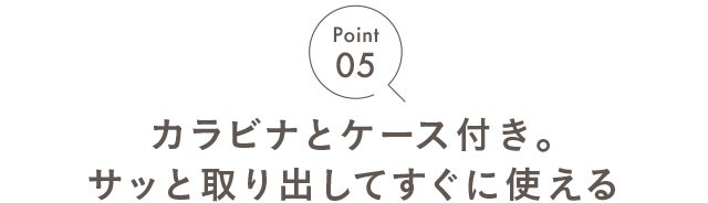 - カラビナとケース付きで、サッと取り出してすぐに使える!キャンプなどのアウトドアでも大活躍
