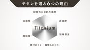 ステンレスの10倍以上の価値があるとされる貴重な素材チタンだからこそ、シンプルなデザインでも安っぽくならず、おしゃれに仕上がりました。