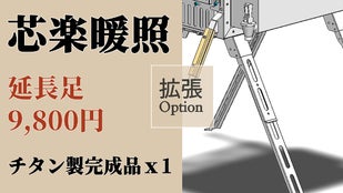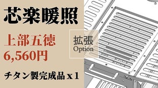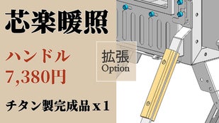 芯楽暖照のオプションはほとんどがチタン製で構成されています(一部ステンレス304材質:5mmステンレス製五徳および上部焚き火窓の取っ手)。チタンは軽量で耐久性に優れた素材でありながら、加工が非常に難しく、高度な技術を要します。