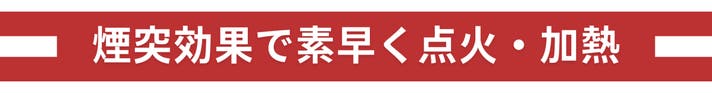 A:煙突効果(ドラフト)を活かした燃焼で立ち上がりが速く、効率的に加熱できます。湯沸かしや時短調理に適しています。