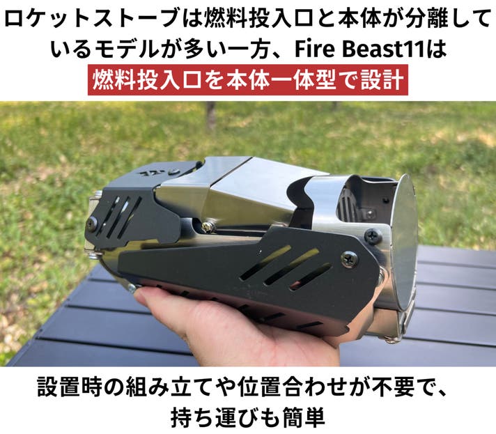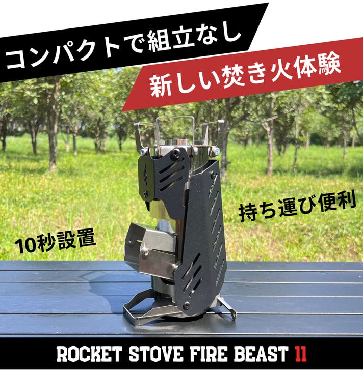 Fire Beast11は、10秒で設置できる高火力の小型ロケットストーブです。