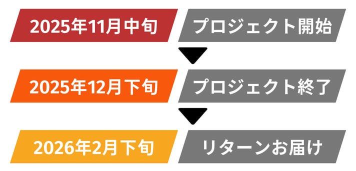 このプロジェクトはAll in型です。目標金額の達成に関わらず、プロジェクト終了日の2025年12月30日までに支払いを完了した時点で購入が成立します。