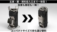 燃料投入口も折りたたみ式の設計で、使用しない時は本体に収納できるため、携行時の省スペース化にも貢献します。