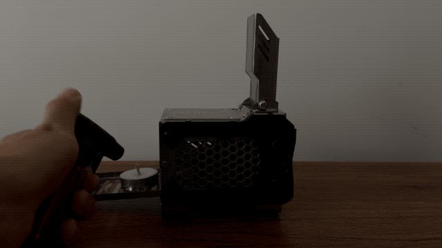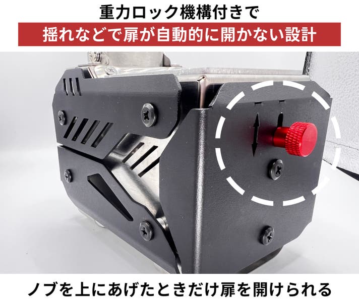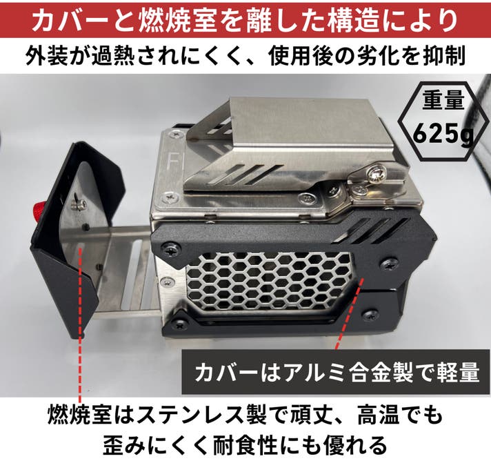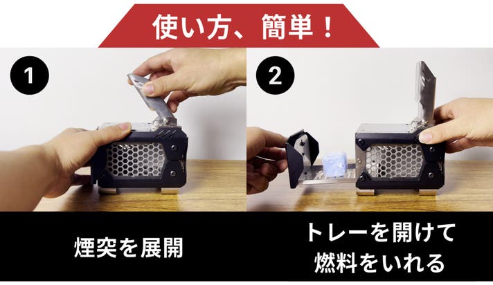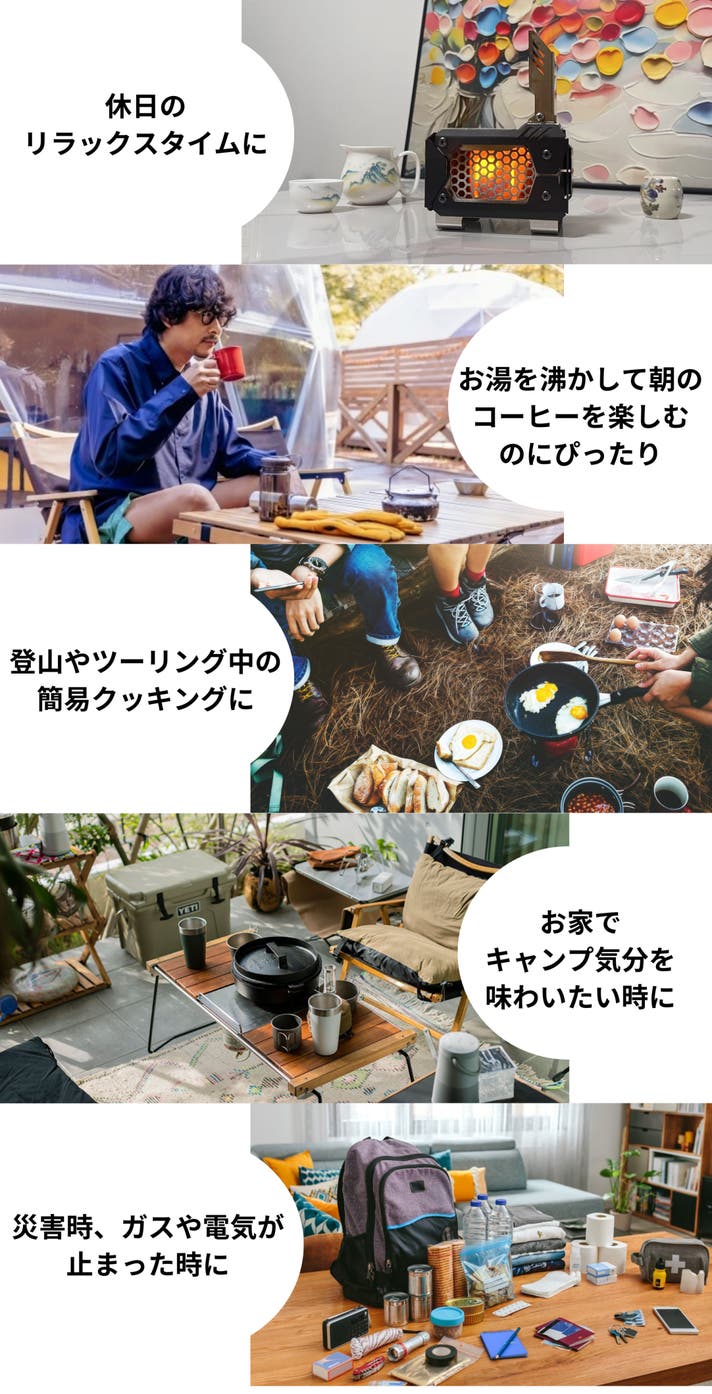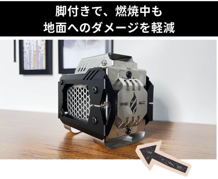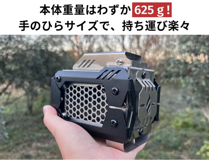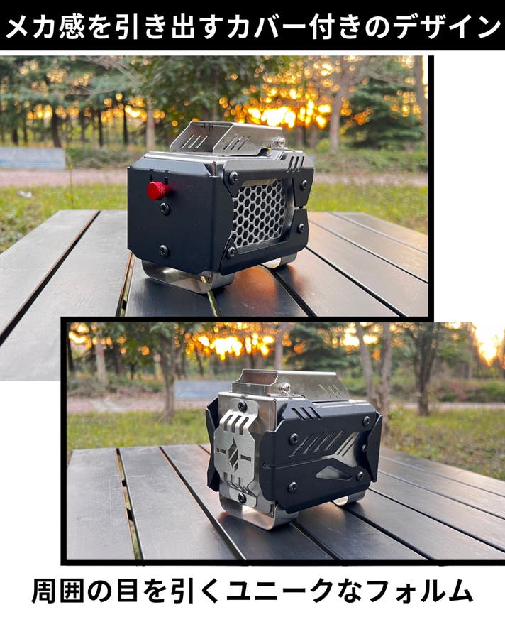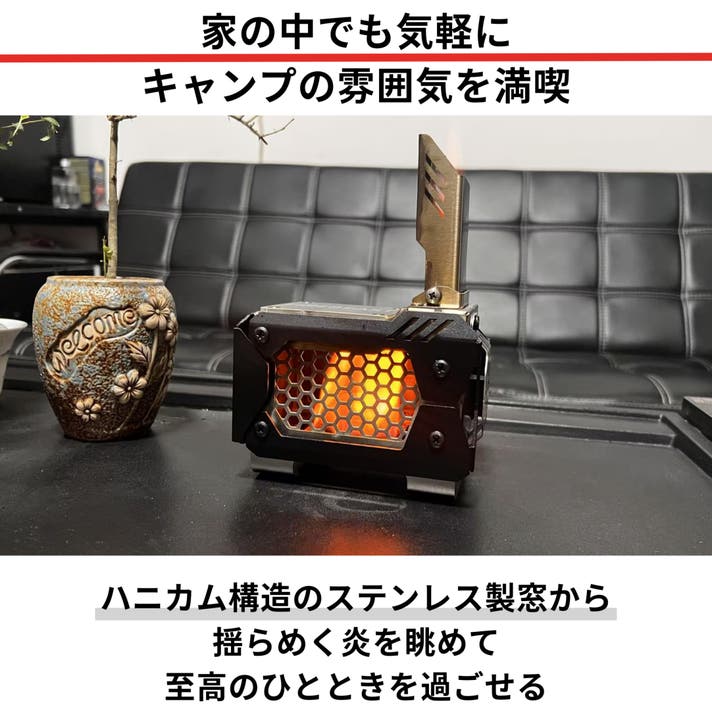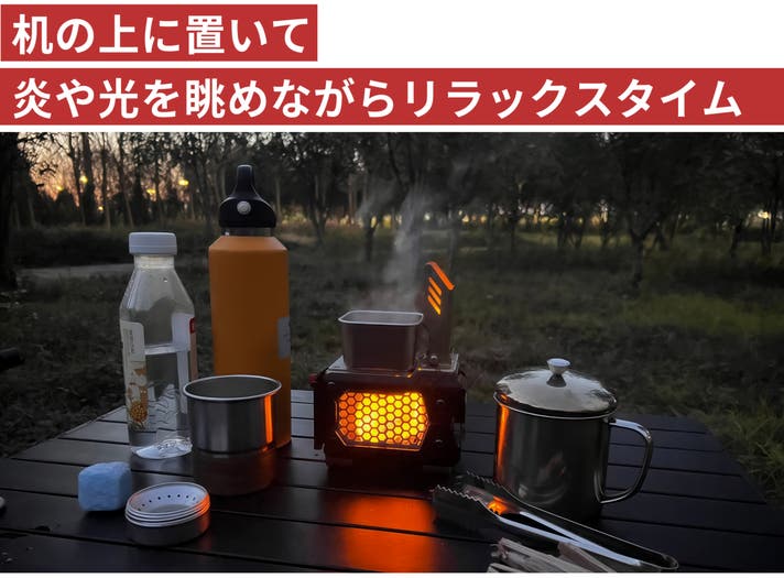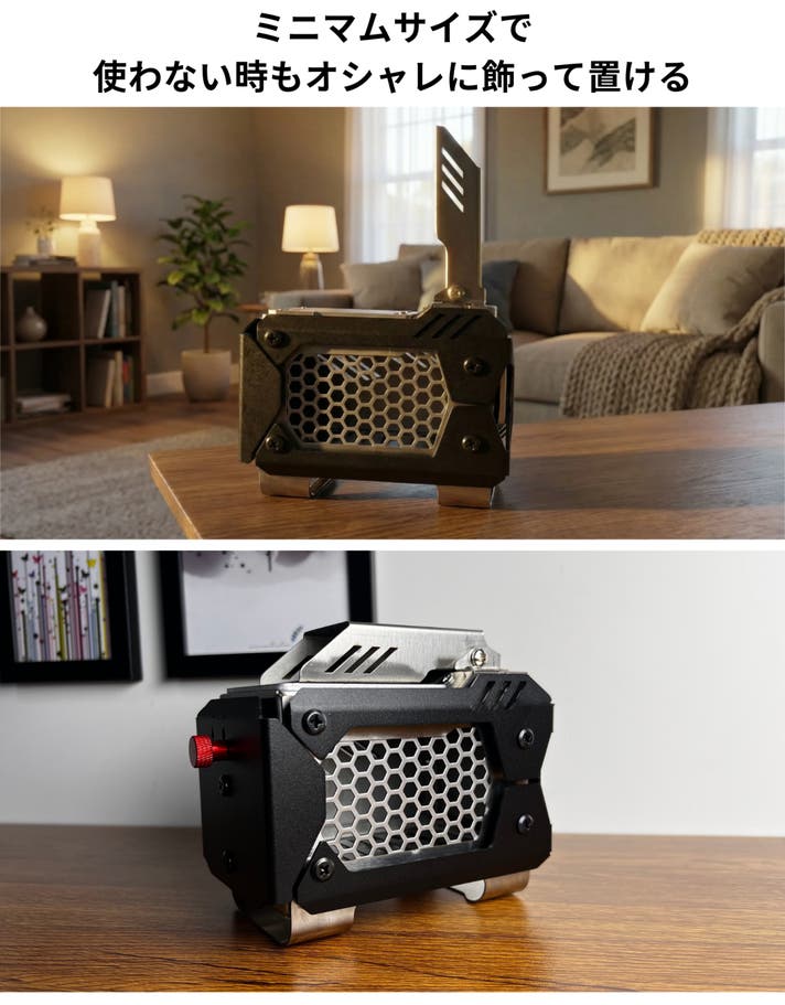 ハニカム構造の窓や一瞬で展開できる煙突、机の上に置いても映えるメカニカルなデザインは、使用時はもちろん、置いておくだけでもワクワクするギアになります。