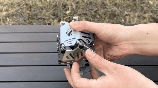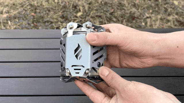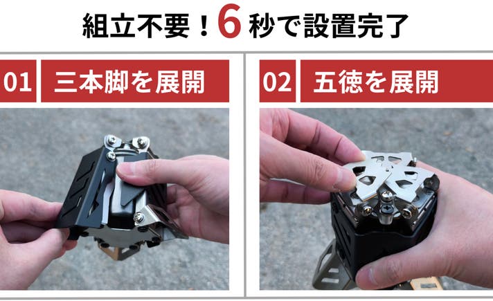 A:一体型で組み立てが不要な構造になっております。さらに、展開式の脚と五徳を本体に収納可能な構造で、持ち運びもスムーズ。キャンプギアの荷物をできるだけ減らしたい方に最適です。