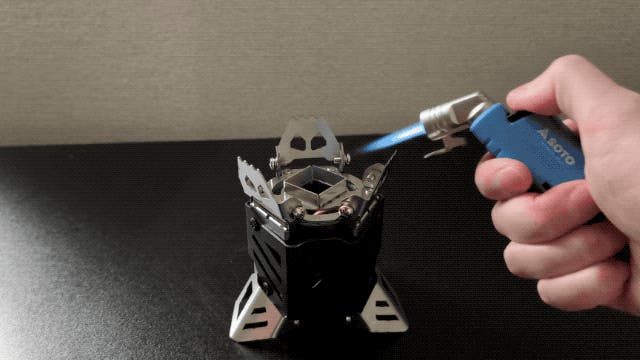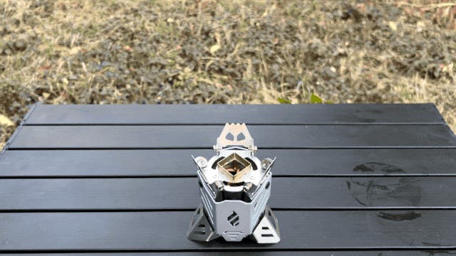 A:煙突効果と毛細管現象を応用した独自構造により、一般的なアルコールストーブよりも早く着火することができます。しかし、本体が冷えている時や外気温が低い時は、プレヒートが2回〜3回必要な時もあります。