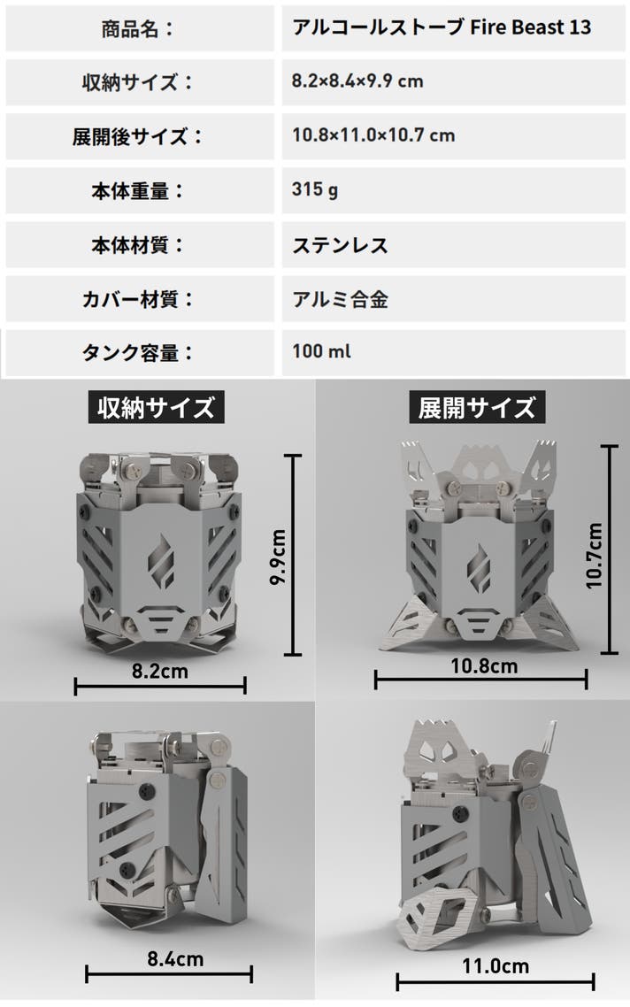 Makuake割!18%OFF アルコールストーブFireBeast13 ×1