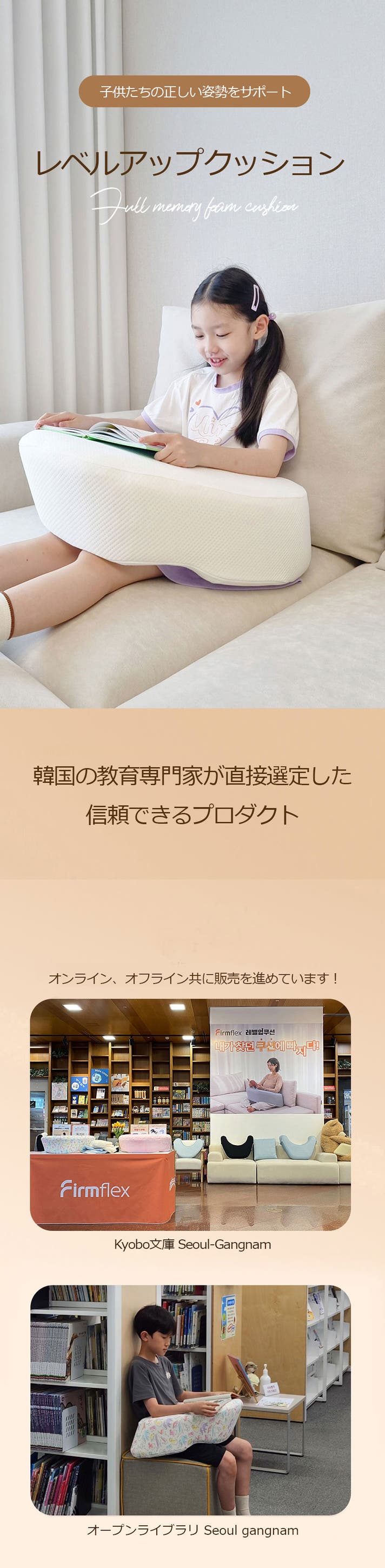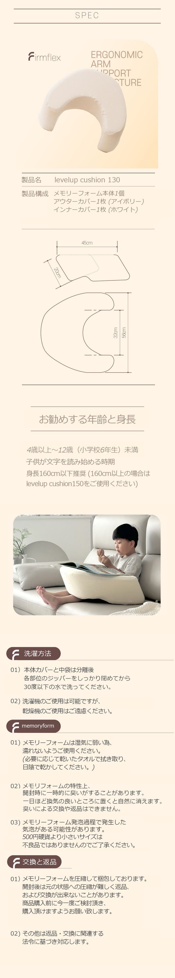 今回新たに登場する レベルアップクッション130(levelup cushion130) は、お子様用に制作されたクッションで、韓国では既に多くの保護者様にご好評頂いております。お子様も使い続けやすく、自ら進んでお使い頂いているとのレビューも多く頂いております。