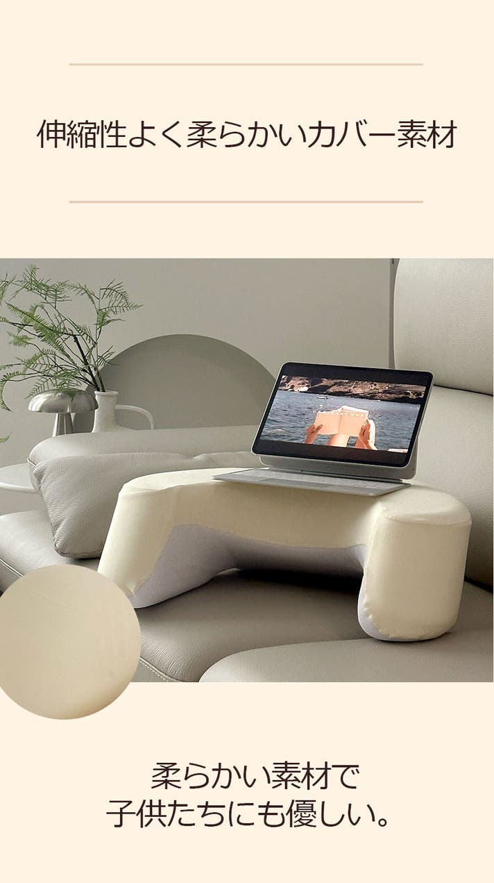 平らな面が上面、湾曲している面が下面です。ソファやベッドでお使いになる際は、両腕が平らな上面にくるようにクッションを使用してください。そうすることで、腕の重さが適切に地面に伝わり、快適さを感じられます。